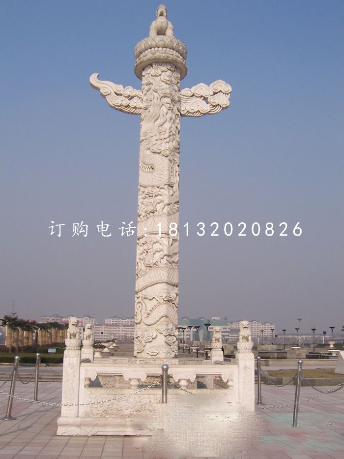 石刻華表古已有之,但明代天安門的白石華表卻自有其時代的特點(diǎn)和藝術(shù)成就。它是以多種雕刻手法塑造的空前建筑裝飾,華表柱身的主體龍紋,以壓地隱起的淺浮雕刻畫出蟠曲而上的龍形,間夾以云紋華飾,使得華表瑰麗而莊嚴(yán),其柱頭上滿飾異彩紛呈的透雕云朵,蓮瓣石盤上飾以圓雕的雄獅。其下還有華麗的八角座,圍以雕刻精致的龍紋欄板和雕刻有獅子的望柱。綜觀華表的總體造型,它是在傳統(tǒng)形式基礎(chǔ)上的升華,同時我們也看到,華表本質(zhì)上也是中西文化合璧的完美象征。