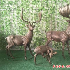 一家三口銅雕鹿