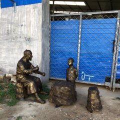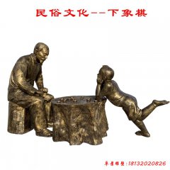 古代爺孫倆下象棋銅雕