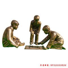 兒童下棋銅雕
