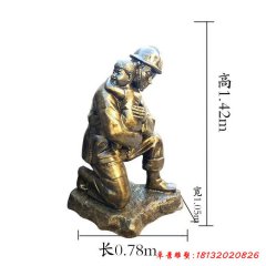 消防員抱孩子銅雕