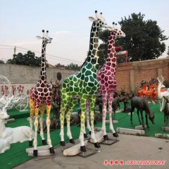 彩色長頸鹿雕塑,玻璃鋼動物