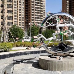 不銹鋼鏡面圓環雕塑寓意。我們的世界如同永恒的圓環,一環套著一環,空間疊加著時間交錯著速度,交錯卻并不相通,我們去不了另一個維度,他們也難以過來。將平面看做二維,我們所處的世界即為三維空間,而四維即時間。(維度的順序并無強弱含義)我們時間所說的只有現在,過去和未來并不屬于三維。所以三維只有空間,而四維只有時間,即四維只存在過去、現在、未來,而沒有空間。