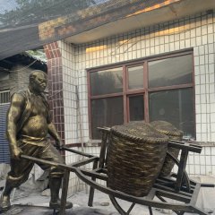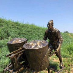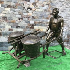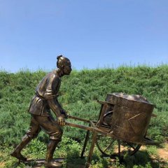 農耕主題推車人物銅雕