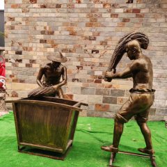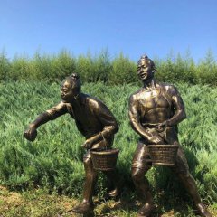 農耕人物施肥銅雕