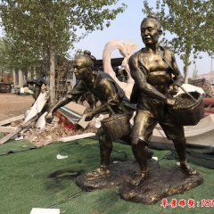 挑扁擔農耕人物銅雕