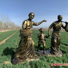 農耕送飯人物銅雕