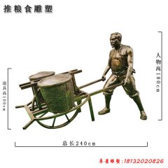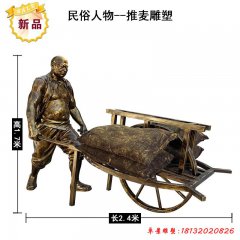 人物推糧食銅雕