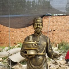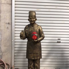 飯店門口店小二銅雕