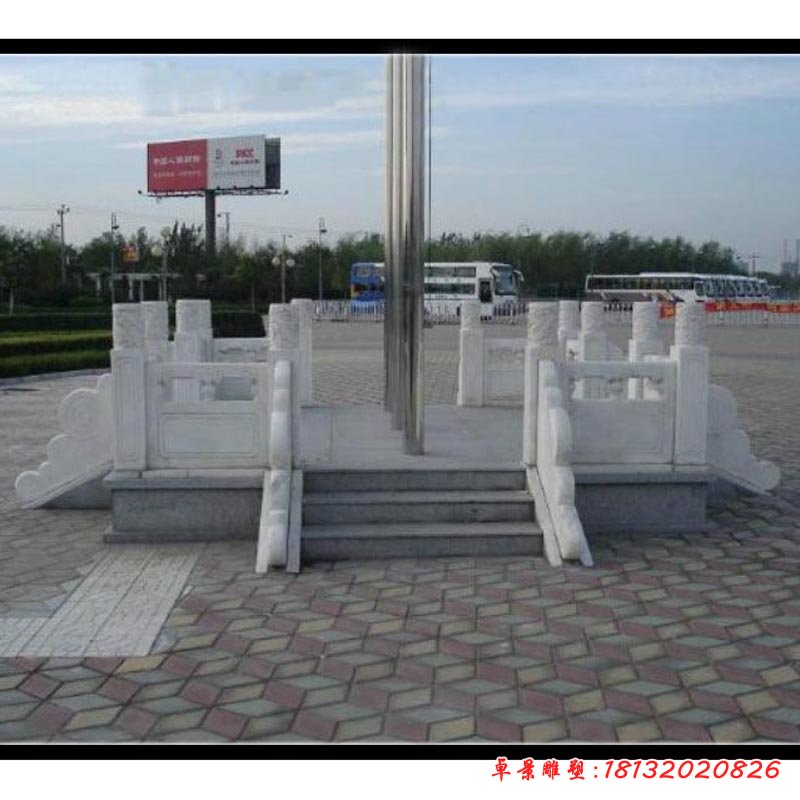 升旗臺(tái),現(xiàn)在一般是用于在政府廣場(chǎng)、大公司、部隊(duì)或?qū)W校里。升旗臺(tái)一般都是用漢白玉雕刻而成的,因?yàn)闈h白玉在視覺(jué)角度上顯得有檔次、高貴。漢白玉旗臺(tái)表面潔白無(wú)瑕,質(zhì)地堅(jiān)實(shí)而又細(xì)膩,非常容易雕刻。漢白玉升旗臺(tái)主要是用來(lái)裝飾,一此來(lái)表示對(duì)國(guó)旗神圣不可冒犯,而且漢白玉是純潔的象征。使用漢白玉升旗臺(tái),不同的地方使用的欄桿雕刻的花紋是各有不同的,在政府門(mén)前使用漢白玉欄桿的話,欄桿上面一般是雕刻花草之類的圖案,而在學(xué)校、部隊(duì)、公司一般也都是雕與其本身相關(guān)的圖案。