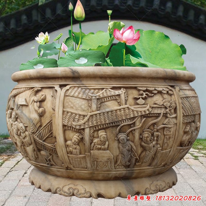 石雕魚缸是我們比較多見的產品之一,魚缸是一種裝活魚的水缸,缸體透明,多為玻璃質地,也可用來飼養熱帶魚或者金魚起到觀賞的作用。魚缸不僅是魚兒的家,更是家人共同的生活享受。無瑕的雙層浮法玻璃,既給魚兒營造了一個溫馨的家,也保證了整體居室環境的安全。魚缸更是家居風水里必不可少的擺件,是與空間的完美結合、家居、辦公,商業空間的靈魂禪師。
