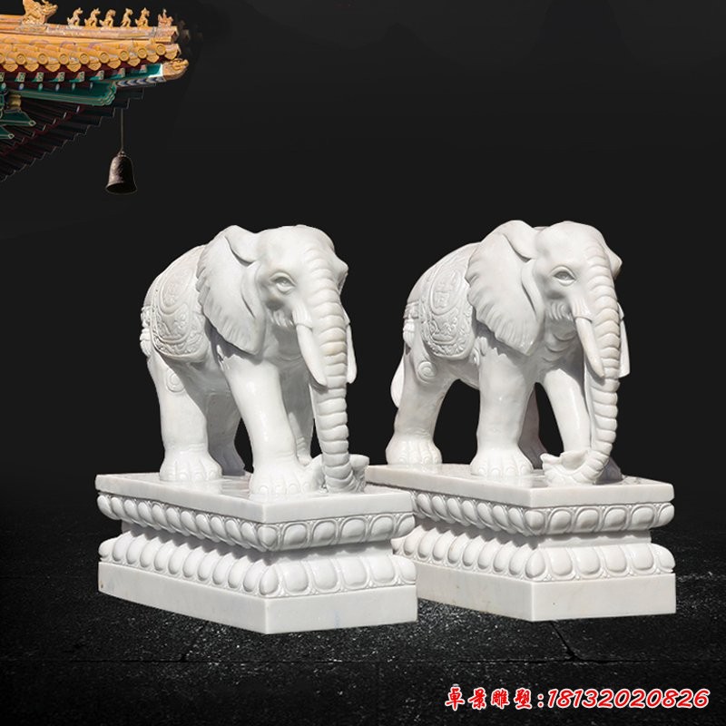 象五行屬金,自古象為神獸,以善吸水馳名,水為財,凡家居大窗見海或水池、河流等水者,均稱為明堂聚水,若擺放大象在家中,則大財小財均為己所納。象之稟性馴良,漢白玉大象石雕塑放在宅中吉祥如意。如將之放在室內財最盛的地方,則全家受惠。