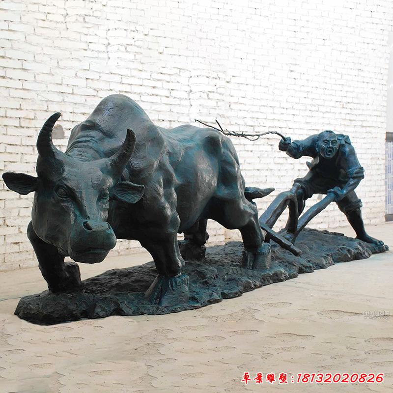 銅雕牛拉犁