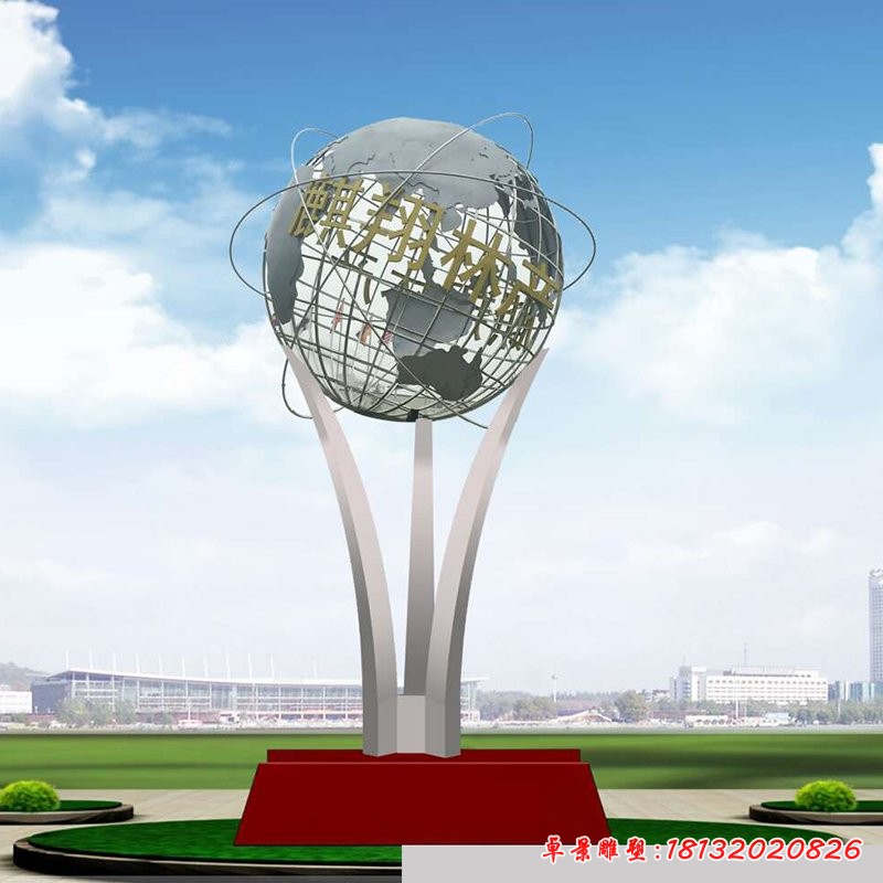 在廣場上的不銹鋼地球儀雕塑由于采用的是不銹鋼為材料,因此在經受風吹雨打的同時,也依然保持著光鮮靚麗的外表。